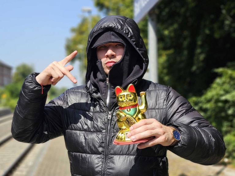 Am Bahnhof Greiz, einer Kleinstadt im ostdeutschen Thüringen, steigt Fjodor Busik in schwarzer Daunenjacke aus dem Zug und hebt lächelnd sein Markenzeichen, eine goldene Winkekatze. Kinder und Jugendliche begrüßen ihn begeistert, bilden einen Kreis – und tanzen vor laufender Smartphone-Kamera den „Ossi-Tanz“. Und das ganz ohne Musik: Busik rappt und summt nur ein paar Silben, dirigiert die Menge – und alle haben sichtlich Spaß. Wenig später wird das Video – nun mit Musik unterlegt – auf TikTok und anderen Social-Media-Kanälen tausendfach geklickt. Die simple Botschaft: Freude, Zugehörigkeit und Ost-Identität.
