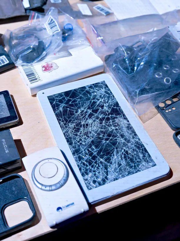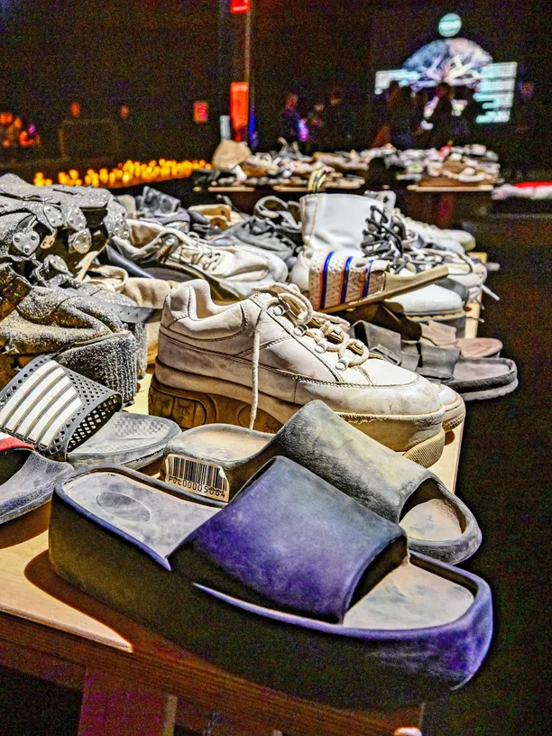 Neben ausgebrannten Autowracks ist ein Schutzbunker nachgebaut. In solche Betonquader, nur wenige Quadratmeter groß, flüchteten sich manche Festivalteilnehmer vor den Raketen – nichts ahnend, dass die Hamas-Terroristen die Bunker nur wenig später mit Handgranaten und Maschinengewehren attackieren würden. Den Kuratoren gelingt es, die Grausamkeit, die den Menschen dort widerfuhr, spürbar werden zu lassen, ohne dass sie allzu ausdrücklich wird. Eine Überlebende erzählt in einem Video, wie sie sich unter all den Leichen tot stellte. Ein Foto zeigt den Boden eines Bunkers nach seiner Evakuierung: nur ein Haufen blutdurchtränkter Schuhe. Auch der Raum, der sich eigens der sexualisierten Gewalt widmet, deutet eher an, als dass er die grausamen Misshandlungen ausführt.