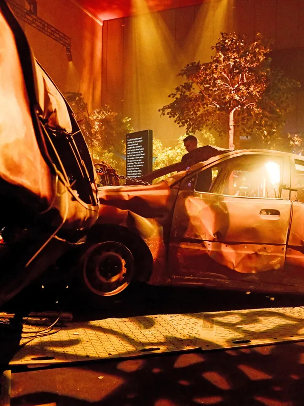 October 7, 06:29 AM – The Moment Music Stood Still lief bereits in Tel Aviv, Buenos Aires und etlichen US-Metropolen, nun ist die Ausstellung erstmals in Europa zu sehen, und zwar in einem der Hangars des ehemaligen Berliner Flughafens Tempelhof. Sie will den Angriff der Hamas auf das Nova-Musikfestival am 7. Oktober 2023, bei dem Hunderte junge Menschen starben und 44 von ihnen als Geiseln gefangen wurden, erfahrbar machen: durch ein multimediales, immersives Erlebnis. Ein Video, in dem Überlebende erzählen, welche Bedeutung der besondere Mikrokosmos dieses Festivals für sie hatte, endet mit Aufnahmen, die zeigen, wie morgens um 6.29 Uhr die Musik abgedreht wird. "Roter Alarm!" wird vom DJ-Pult gerufen. "Es sind Raketen in der Luft!" So beginnt die Ausstellung, wie das Nova endete.