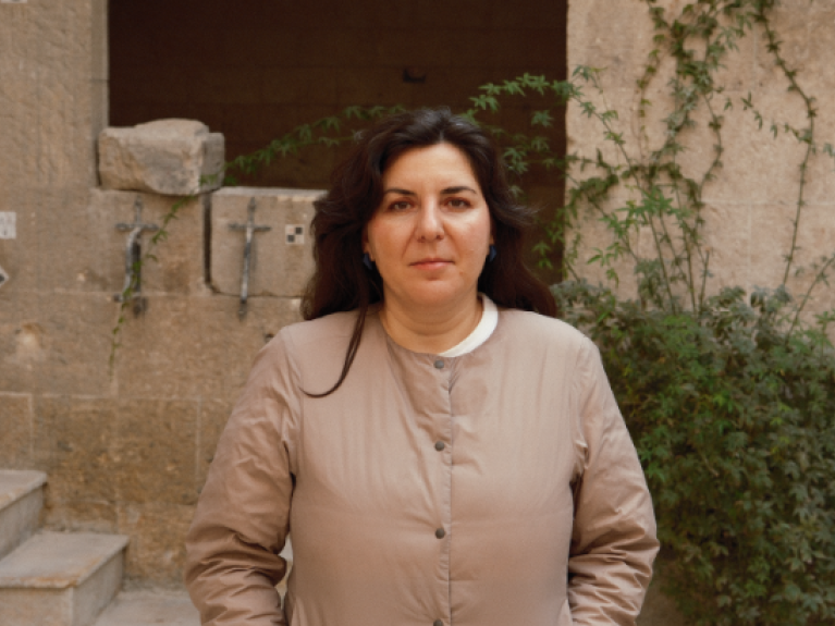 Hier arbeitet Dima Dayoub daran, Aleppos verlorene Architektur wiederzubeleben. Sie ist Projektkoordinatorin für den Wiederaufbau von Beit Wakil und arbeitet für den Berliner Verein „Freunde des Museums für Islamische Kunst“. Das Gebäude ist das ursprüngliche Zuhause des Aleppo-Zimmers, das heute zum Bestand des Museums für Islamische Kunst in Berlin gehört. Durch den Bürgerkrieg und das Erdbeben 2023 wurde es jedoch stark zerstört.
