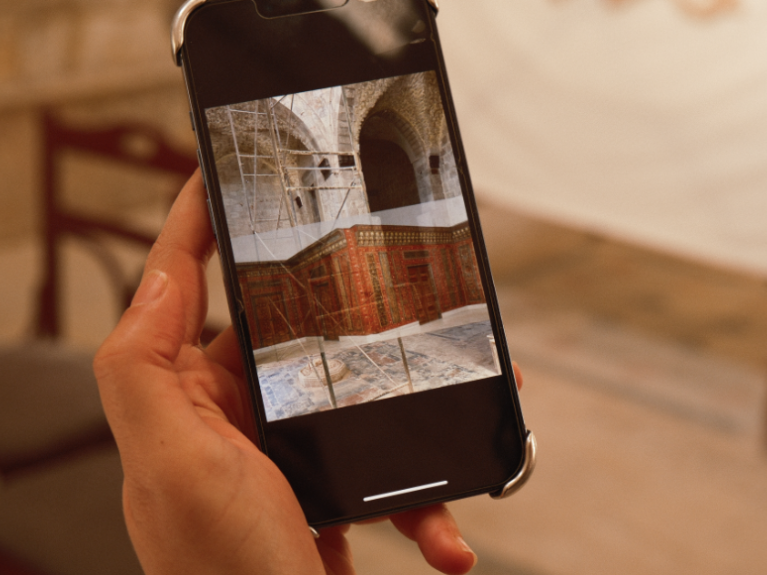 „Momentan restaurieren wir das Haus, wir wollen die ursprünglichen Elemente wiederherstellen“, erklärt Dayoub. Dabei stützt sie sich auf Archivfotos von Beit Wakil aus dem Syrian Heritage Archive Project, das 2013 am Museum für Islamische Kunst in Zusammenarbeit mit dem Deutschen Archäologischen Institut startete. Finanziert wird es unter anderem vom Auswärtigen Amt. Ziel des Projekts ist es, Daten zu dokumentieren, um das syrische Kulturerbe zu bewahren und sie über eine offene Datenbank zugänglich zu machen. „Es handelt sich um ein großes Archiv, das hauptsächlich aus Fotografien und Zeichnungen von Forschenden und Reisenden aus Syrien besteht“, sagt Dayoub.