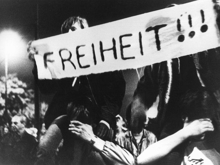 Doch all diese Gewaltmittel des DDR-Staates verloren ihren Schrecken, gerade weil sich die Akteure selbst der Gewalttätigkeit enthielten. Die seit Anfang der 1980er-Jahre am Rande der evangelischen Kirchen wirksamen staatsunabhängigen Friedens-, Frauen-, Umwelt- oder Demokratie-Gruppen erlangten so eine fast unwiderstehliche Macht und Legitimation. Besonders in Leipzig wurde 1989 die Basis geschaffen, auf der unsere heutige Gesellschaft steht. Dort wagten sich am 9. Oktober mehr als 100.000 Menschen auf die Straße. Schon am 4. September hatten sich erste Demonstrationsversuche, angeführt von jungen Leuten, die die Friedengebete in der Nikolaikirche gestalteten, entwickelt. Sie entrollten ein Transparent: „Für ein offenes Land mit freien Menschen“.