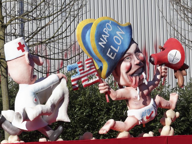 Karneval ist in Deutschland, etwa in Köln, Düsseldorf oder Mainz, ein Ausnahmezustand mit festen Ritualen. Die Rosenmontagszüge bilden vielerorts den Höhepunkt: Zehntausende feiern in lustigen Verkleidungen und verspotten unter dem Schutz der Narrenfreiheit öffentlich politische Missstände.