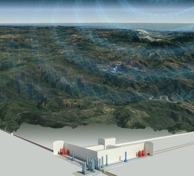 Um möglichst präzise und störungsfrei messen zu können, müssen die drei etwa zehn Kilometer langen Arme des Teleskops unterirdisch, etwa 250 Meter tief, angeordnet werden.