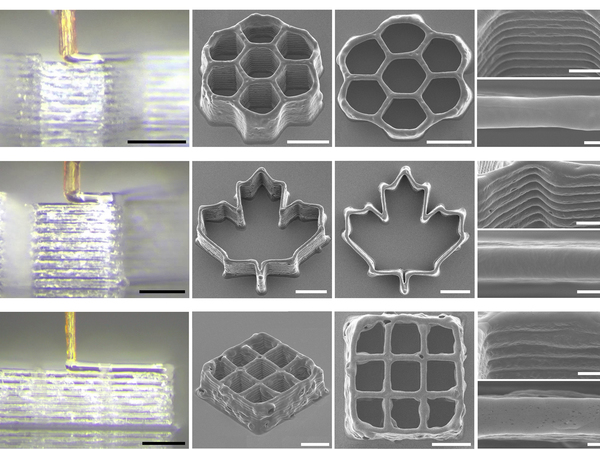 Durch die etwa 20 Mikrometer Innendurchmesser des Stachels war es tatsächlich möglich, verschiedene für Bioprinting genutzte Substanzen hindurchzupressen. So konnten gezielt dreidimensionale Strukturen mit einer Auflösung von bis zu sechs Mikrometern gedruckt werden.